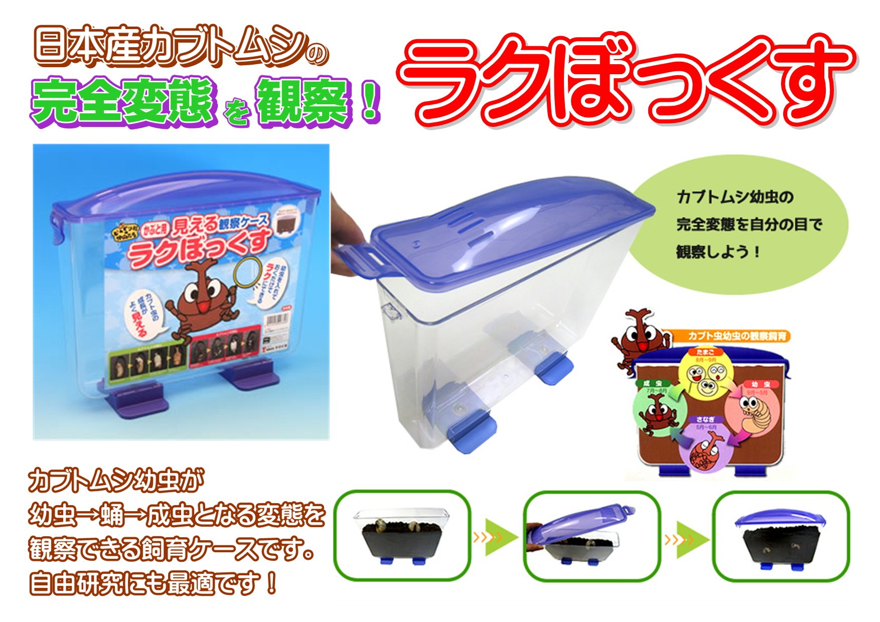 見える観察ケース ラクぼっくすでカブトムシ幼虫の蛹化 羽化の観察を