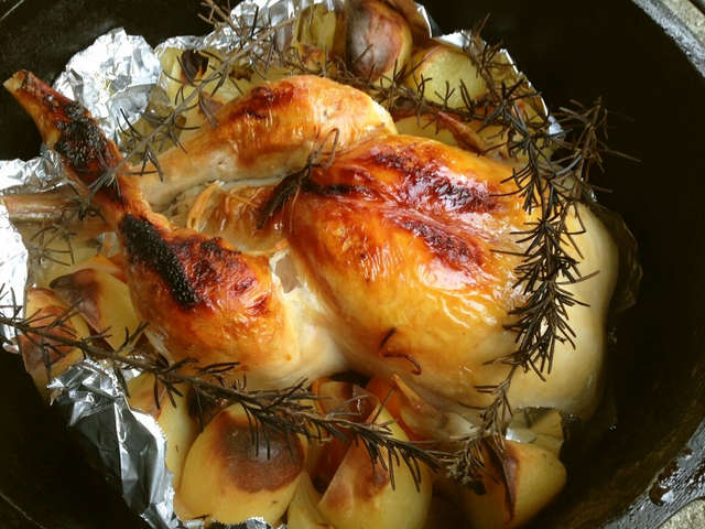 ダッチオーブンで焼く 丸鶏のローストチキン