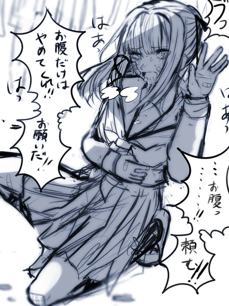 お題箱より お腹を殴られた娘 赤井林檎 さんのイラスト