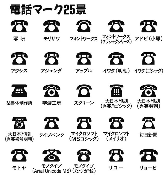 電話を表すフォントはよく見ると実に味わい深くて面白い こんなに違う